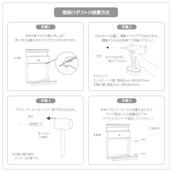 壁掛けポスト 鍵付き A4サイズ対応