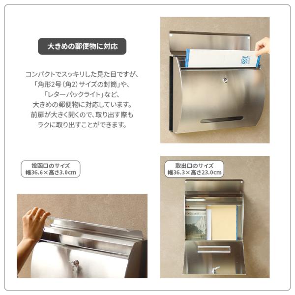 壁掛けポスト ステンレス製 シリンダー錠 A4サイズ対応