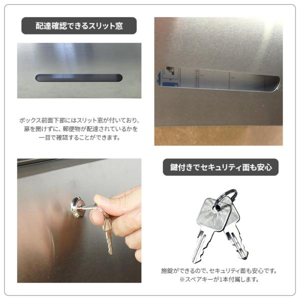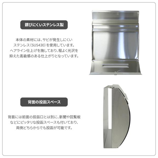 壁掛けメールボックス ステンレス製 鍵付き シリンダー錠 防犯 盗難防止 メールボックス ポスト シンプルデザイン シルバー