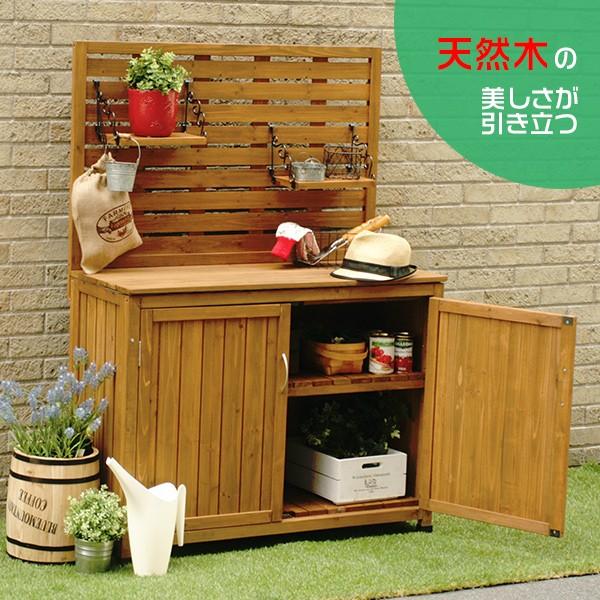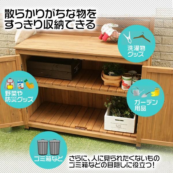 収納庫 幅80cm台 ブラウン 天然木 木製 物置 庭 物入れ おしゃれ 北欧 ナチュラル カントリー ガーデニング用具入れ 掃除道具入れ おもちゃ入れ 工具入れ 目隠し 背面パネル 吊り棚