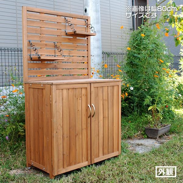 収納庫 幅100cm台 ブラウン 天然木 木製 物置 庭 物入れ おしゃれ 北欧 ナチュラル カントリー ガーデニング用具入れ 掃除道具入れ おもちゃ入れ 工具入れ 目隠し 背面パネル 吊り棚