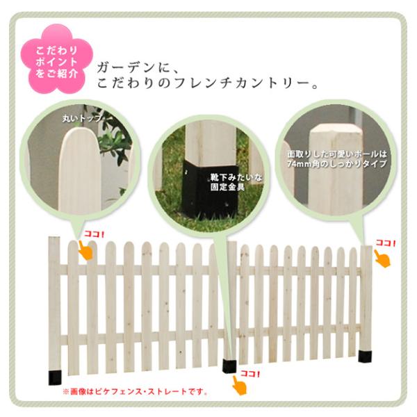 土中4連結セット ピケットフェンス U型 フェンス 木製フェンス ピケフェンス 天然木製 ガーデンフェンス ガーデニング 枠 柵 仕切り 目隠し 境目 クラシカル