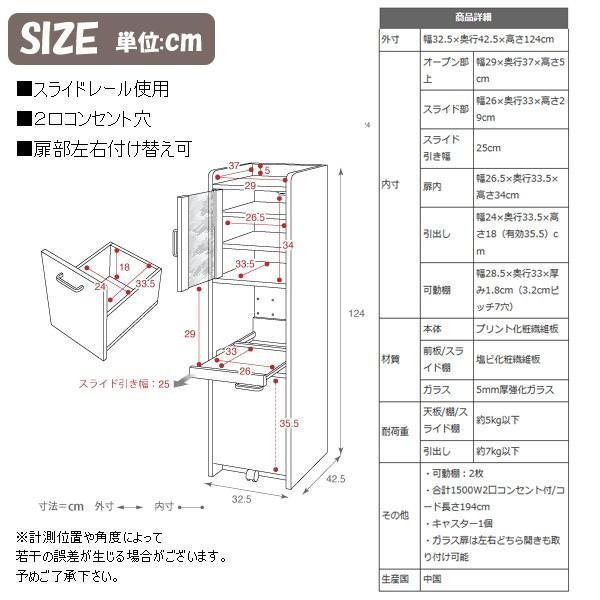(幅)32.5(奥行)42.5(高さ)124cm