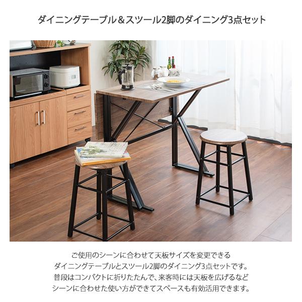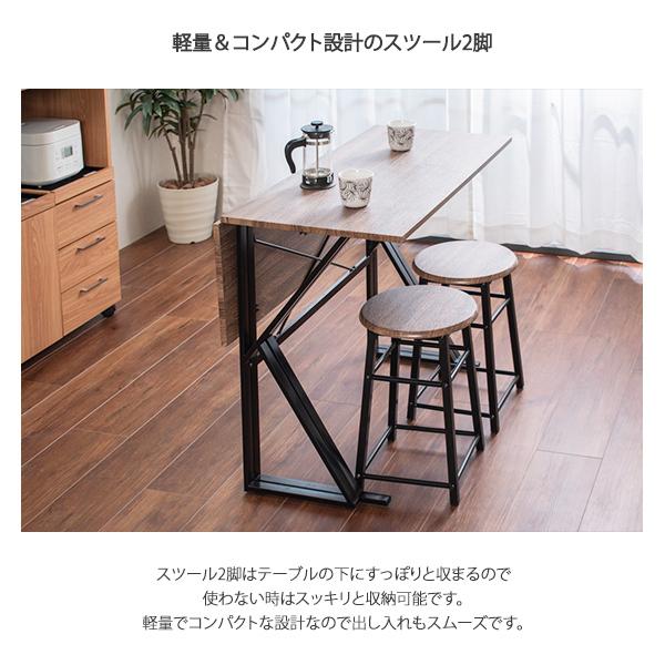 ダイニング3点セット テーブル&スツール2脚 折りたたみ 省スペース ブラウン ブラック 木目調