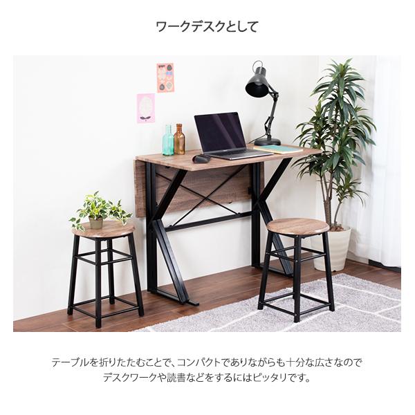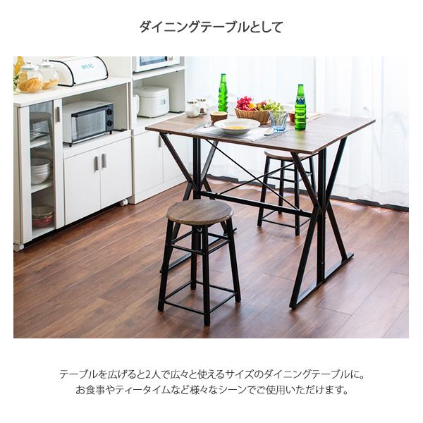 【関連用途】省スペース デスク 高さ72.5 幅90 奥行45 奥行75 インダストリアル ブルックリン 2人 コンパクト 軽量 エクステンションテーブル 片バタ バタフライ式 伸長 テーブル+スツール2脚 片側バタフライ ブラウン スチール脚 おしゃれ