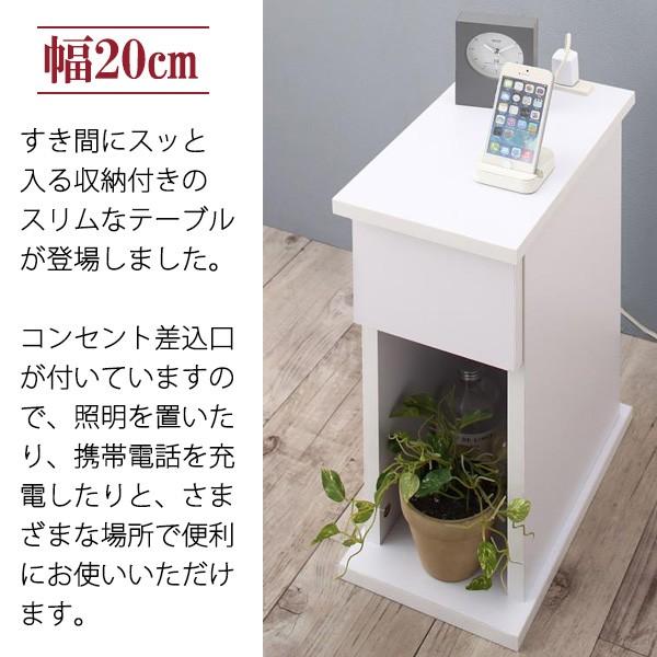 テーブル コンセント付テーブル コンセント付収納 机 収納付きテーブル サイドテーブル ナイトテーブル 引出しタイプ 幅20cm 2口コンセント付き サイドテーブル ベッドサイド ラック スリム 省スペース コンパクト サイドチェスト 収納ラック 寝室 隙間収納 木製 北欧 収納ボックス サイドチェスト ホテル ベット サイド テーブル ベッドルーム すき間収納 収納 デスク下 A4サイズ ウォールナットブラウン ブラック ホワイト ナチュラル ダークグレー ライトグレー