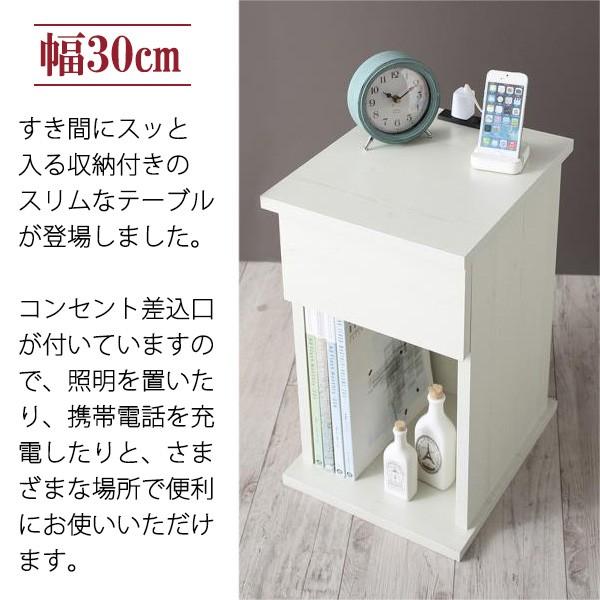 ナイトテーブル 幅30cm 引出しタイプ コンセント サイドテーブル 寝室 収納 隙間収納 ベッド サイド チェスト ナイトチェスト 木製 北欧 おしゃれ 新生活