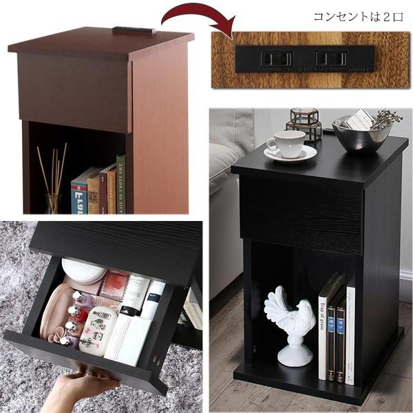 ナイトテーブル 幅30cm 引出しタイプ コンセント付き