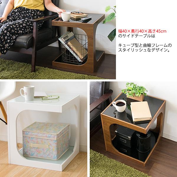 サイドテーブル 2段 棚 ガラス天板 ソファーテーブル 収納 オープンシェルフ 北欧風 シンプル ブラウン ホワイト 新生活