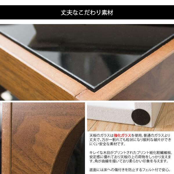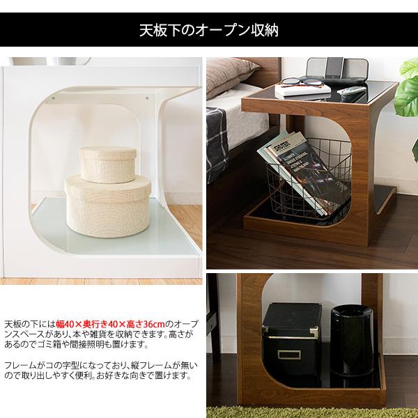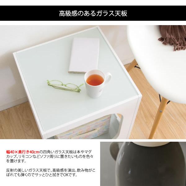 ガラス天板 サイドテーブル 収納 2段 オープンシェルフ