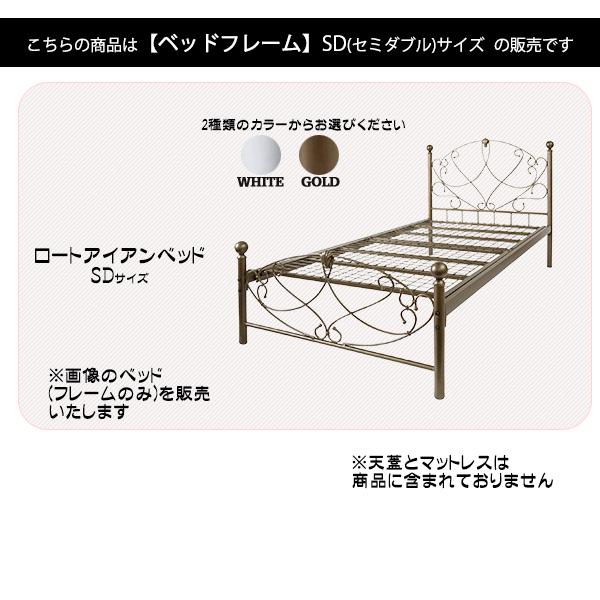 ロートアイアンベッド 寝台 アイアン 練鉄 ハイタイプ ベッドフレーム パイプ セミダブル SDサイズ ホワイト ゴールド