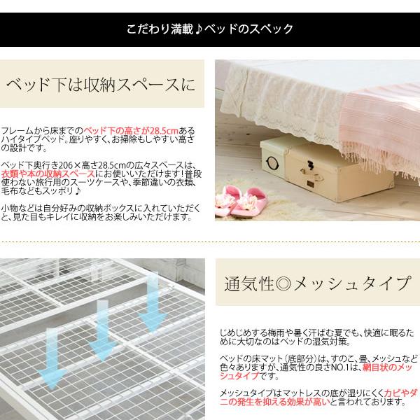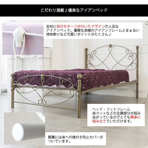 ベッドフレーム メッシュタイプ ハイタイプ 脚付き スチール ホワイト ゴールド 白 金 曲線 簡単組立 お姫様ベッド 姫系インテリア シンデレラベッド 貝デザイン アクアマリン風 セミダブルサイズ