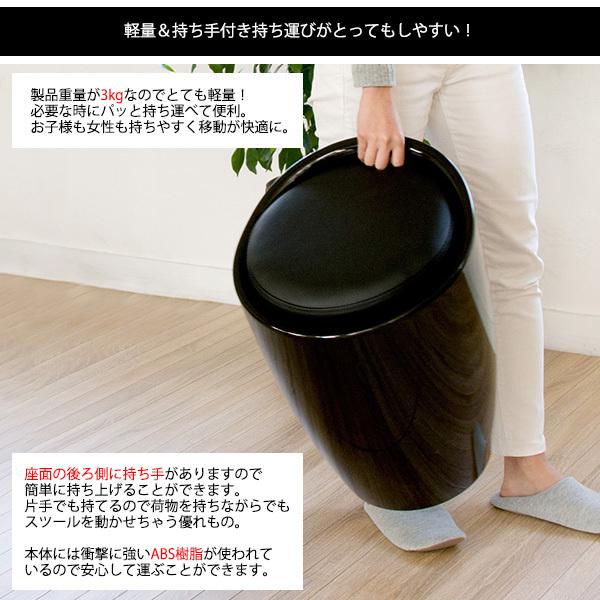 スツール 収納 丸型 PUレザー 合成皮革 ウレタン 高さ50cm 軽量 光沢 ブラック ホワイト アイボリー 白 黒 新生活