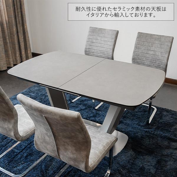 ダイニングテーブル5点セット レザーファブリック チェア4脚 グレー ホワイト セラミック天板 伸張式 2段階 幅140cm 幅180cm