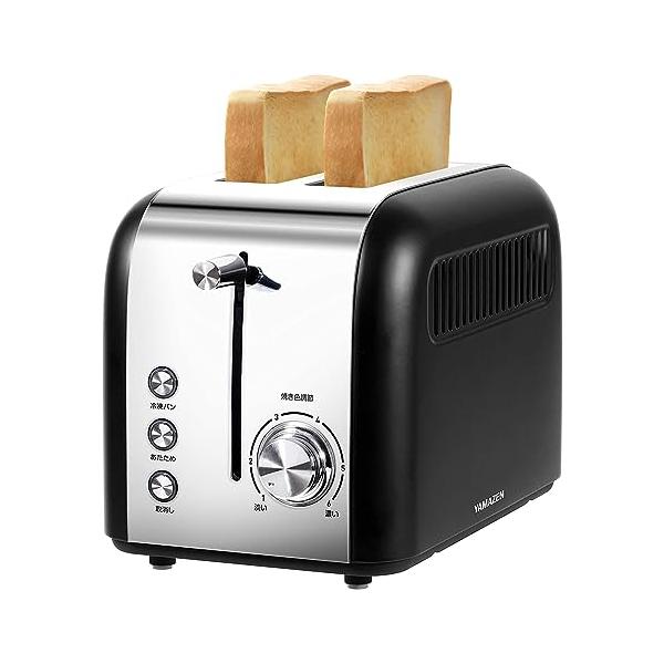 山善 ポップアップトースター ステンレス 焼色調節6段階 2枚焼き 冷凍パン あたため 簡単操作 シルバーブラック YUC-S851(B)