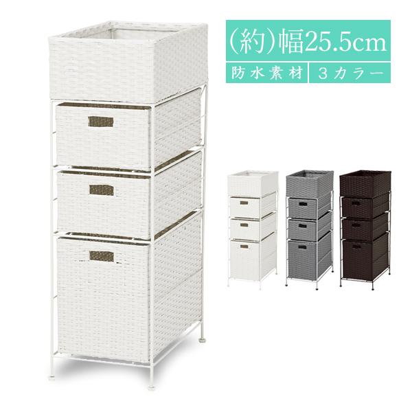 スリム ランドリーラック 3段 洗濯機ラック ランドリー収納 洗濯カゴ かご トイレ 収納 洗面所 収納 隙間収納 ランドリーバスケット おしゃれ 幅25.5cm
