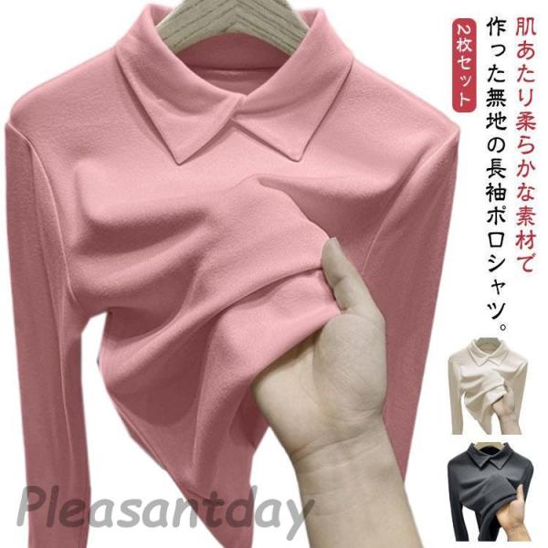 2枚セット ポロシャツ レディース 長袖 ポロシャツ tシャツ 襟付き トップス カットソー トップス スリム 微起毛 春 秋 冬 春服 春物 秋服