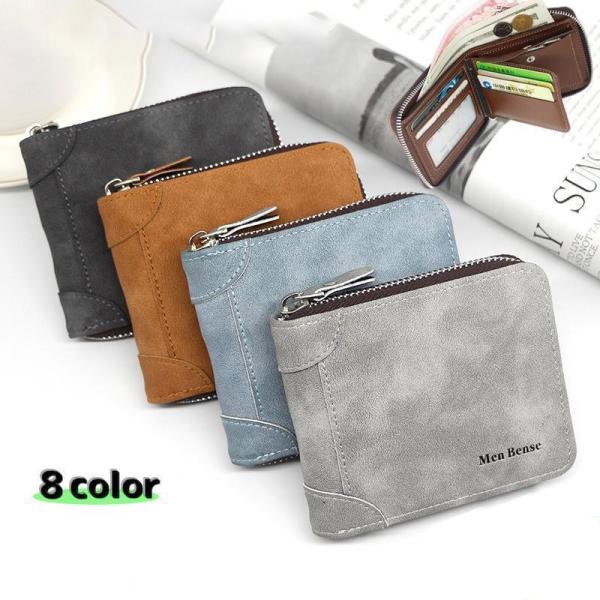 メンズ二つ折り財布 メンズウォレット 財布 男性 紳士 ファスナー 小銭入れ カード入れ クリア窓付き フェイクレザー コンパクト プレゼント