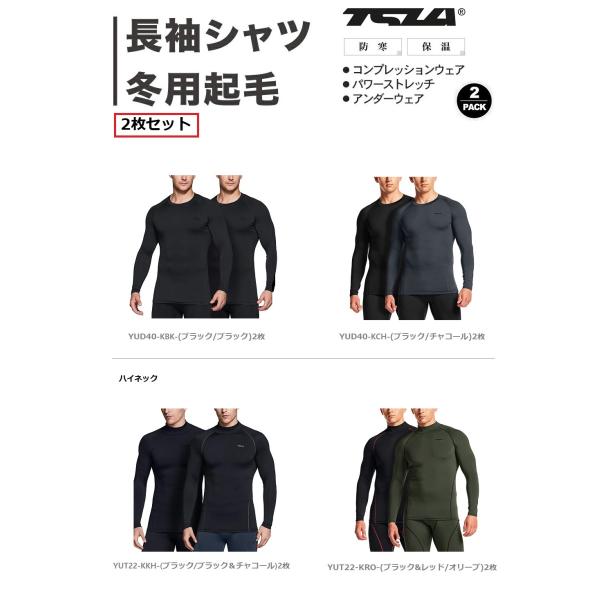 テスラ TESLA 裏起毛 コンプレッションシャツ 2枚セット 吸湿速乾 軽量保温 防寒 UVカット 長袖 暖かい スポーツ シャツ 保温インナー YUD40/YUT22 爆買