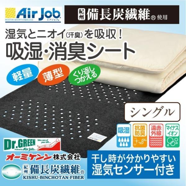 エアジョブ 湿気とニオイ(汗臭)を吸収!【紀州備長炭繊維使用 吸湿・消臭シート】<シングル>