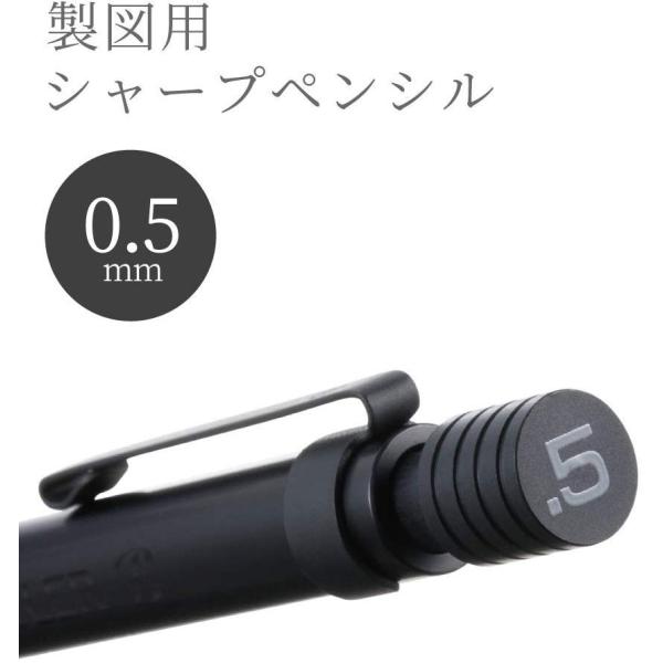低重心で滑り止め加工が施された、安定感のある製図用シャーペンシル。