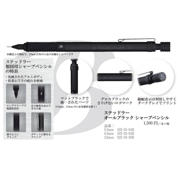 シャープペン送料無料 一部地域除くステッドラー シャーペンオールブラック92535シリーズ 0.5mm ブラック 925 35-05B