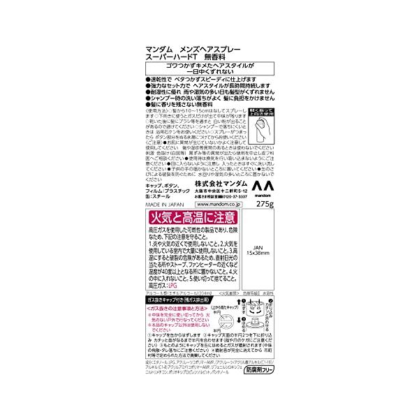 MANDOM (マンダム) メンズ ヘアスプレー スーパーハード スタイリング剤 275g×3本