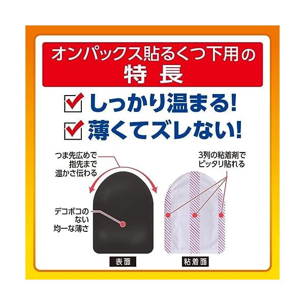 ・薄い、ズレない しっかり温まるくつ下のつま先に貼るだけで、足もとをしっかり温めます。