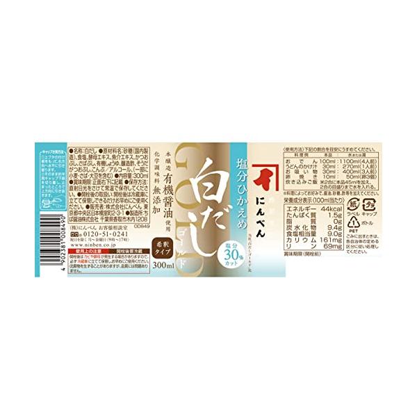 にんべん 塩分ひかえめ白だしゴールド 300ml×4本 希釈タイプ