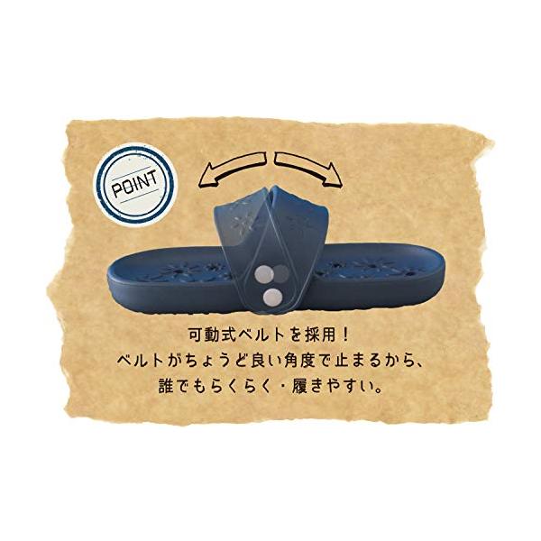 ミツギロン サンダル ベランダ 両方から履ける ~25cm インディゴブルー おしゃれ 穴あき 両履き 可動式ベルト 日本製 フルール BT-2