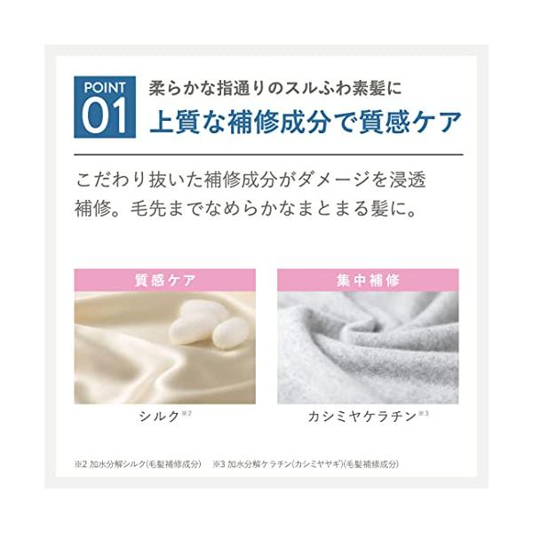 ・自宅でサロン品質のケア、変わっていく髪の質感 日々の外的ダメージを集中補修するシルク×カシミヤケラチン配合。