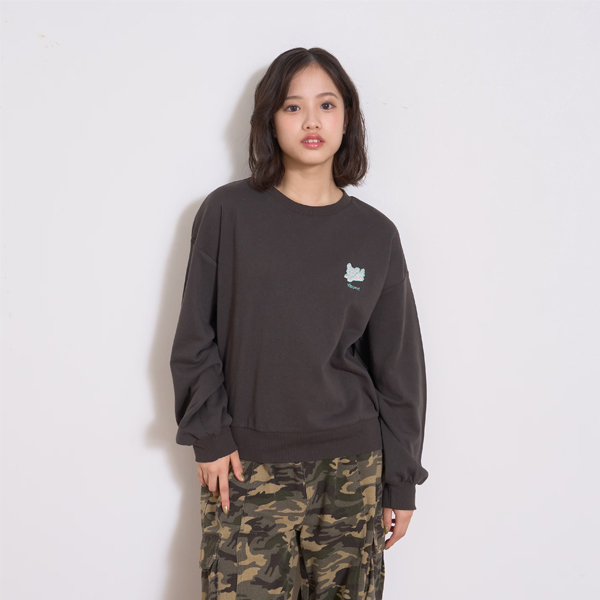 トップス 長袖 トレーナー スウェット オーバーサイズ 刺繍 ワンポイント バックプリント かわいい おしゃれ 春 秋 子供服 キッズ ジュニア 高学年 レディース 女の子