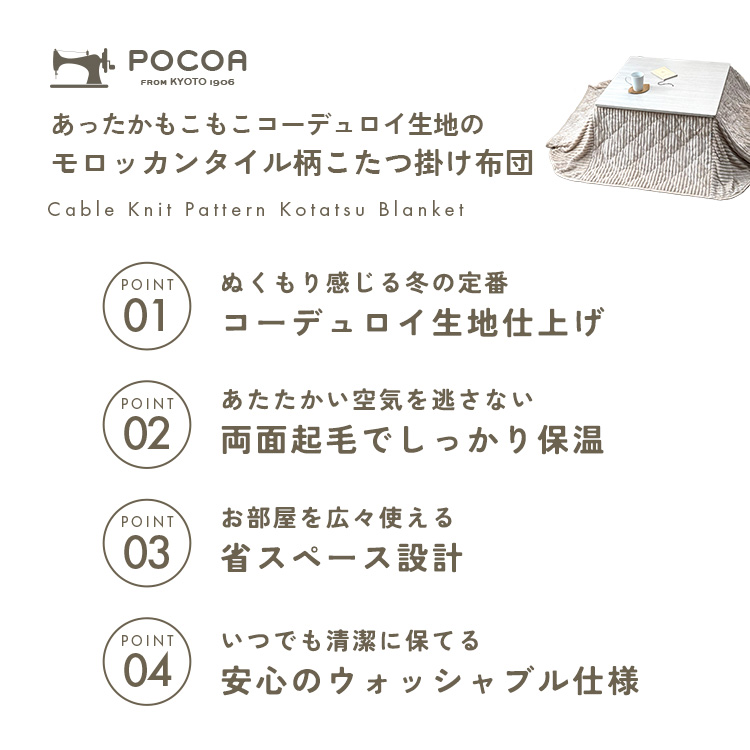 こたつ布団 正方形 160×160cm 省スペース 洗える 両面起毛 フランネル ケーブル柄 ふんわり もこもこ 軽量 こたつ掛け布団