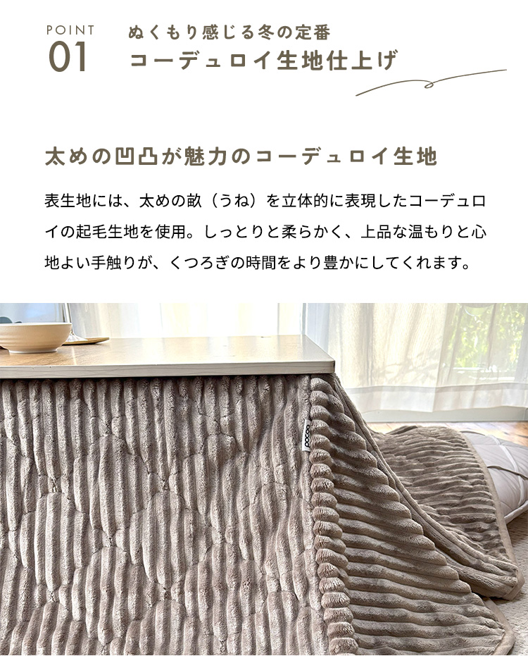 こたつ布団 長方形 205×175cm 省スペース コーデュロイ 洗える ボア 一人用 こたつ掛け布団