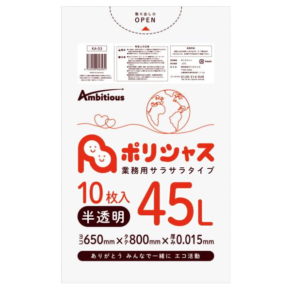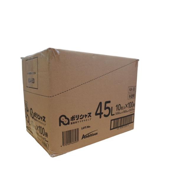 ゴミ袋 45L 半透明 10枚×100冊x1ケース(1000枚) 0.015mm厚 1冊あたり64円 HDPE素材 ポリ袋 ビニール袋 KA-53