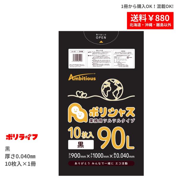 ゴミ袋 90L 黒 0.050mm厚 1冊(10枚) 377円 LLDPE素材 ポリ袋 ビニール袋 LA-97-br バラ販売