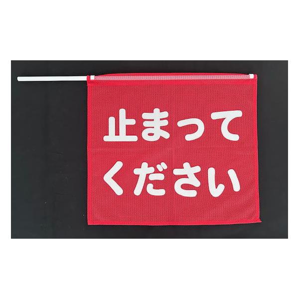 反射文字「止まってください」旗(停止旗)メッシュ(棒付)