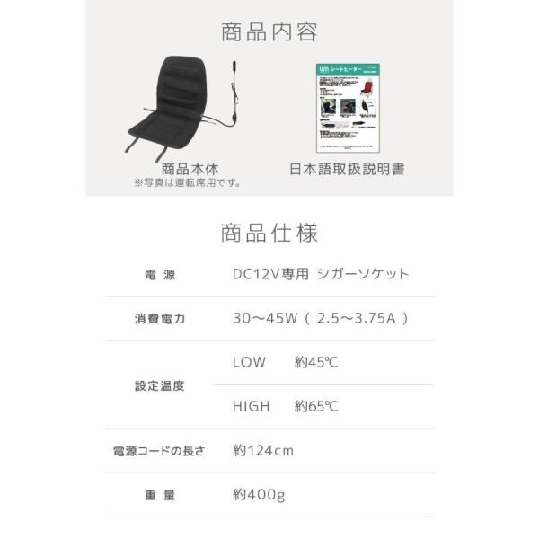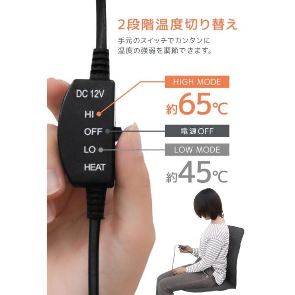 12Vシガーソケットから電源を取るタイプのシートヒーターです。