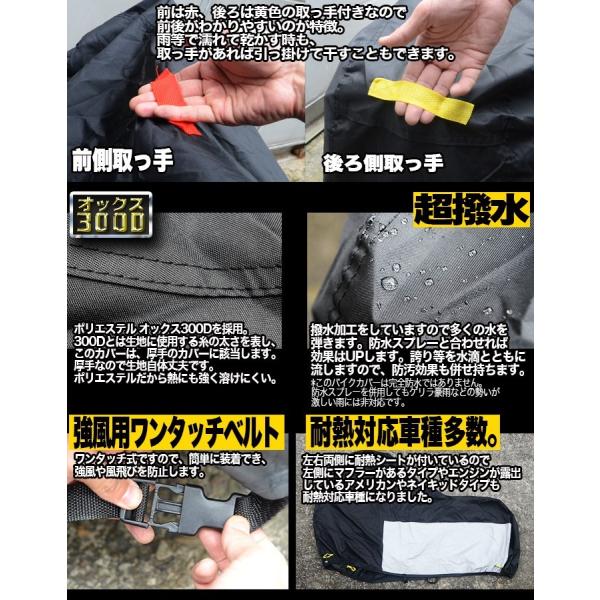 バイクカバー 3Lサイズ 300D 耐熱 防水 大型 厚手 溶けない オートバイ ボディカバー 車体 防雪 超撥水 雨 ホンダ ヤマハ スズキ カワサキ 対応