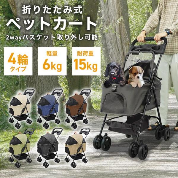 ペットカート 取り外し可能 分離式 折りたたみ 軽量 耐荷重15kg 4輪タイプ 飛び出し防止 収納 ダブルタイヤ 犬 猫 ペット ペットキャリー