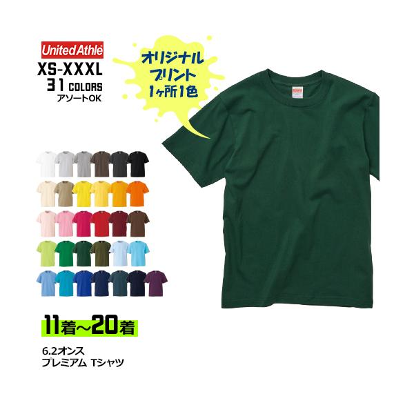 オリジナルプリントTシャツ (11〜20着) 6.2オンス 透けない 長持ち 厚手 メンズ レディース 半袖 | 1箇所1色印刷 United Athle 5942-01