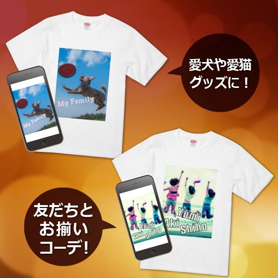 お手元の写真や画像でオリジナルの手作りTシャツが作成できます。