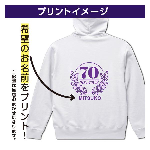 古希 お祝い 70歳 古希のお祝い 上着 パーカー スウェット 女性 男性 紫 プレゼント 名入れ 綿100% 10.0oz フルジップ 70th