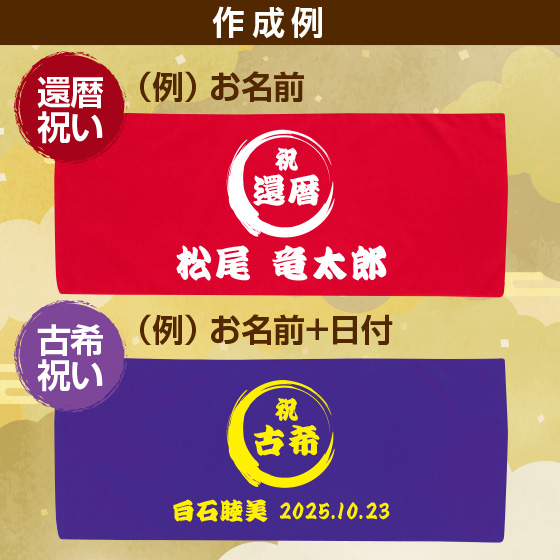 古希や還暦、喜寿 米寿 傘寿などの長寿のお祝いに名前入りタオルのプレゼントはいかがでしょうか。