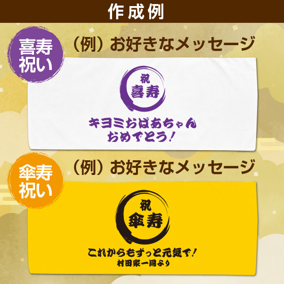 傘寿・米寿のカラーに合わせたお祝いタオル