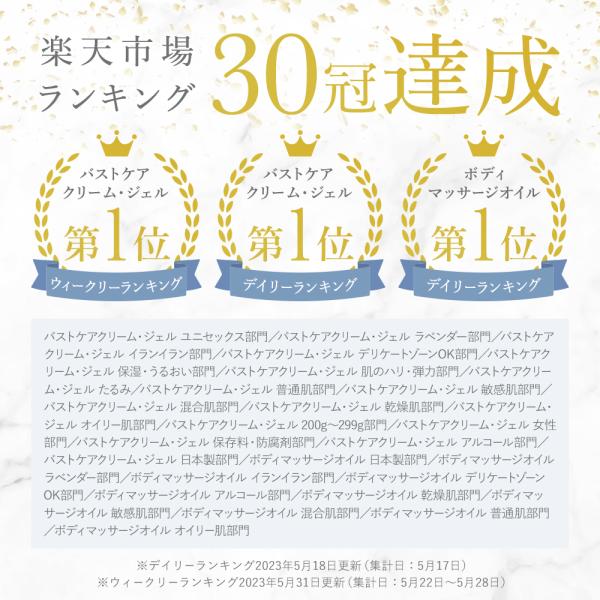 バストケア商品リピート率、お客様満足度、20代〜30代女性が選ぶバストケア商品で第1位を獲得しました。