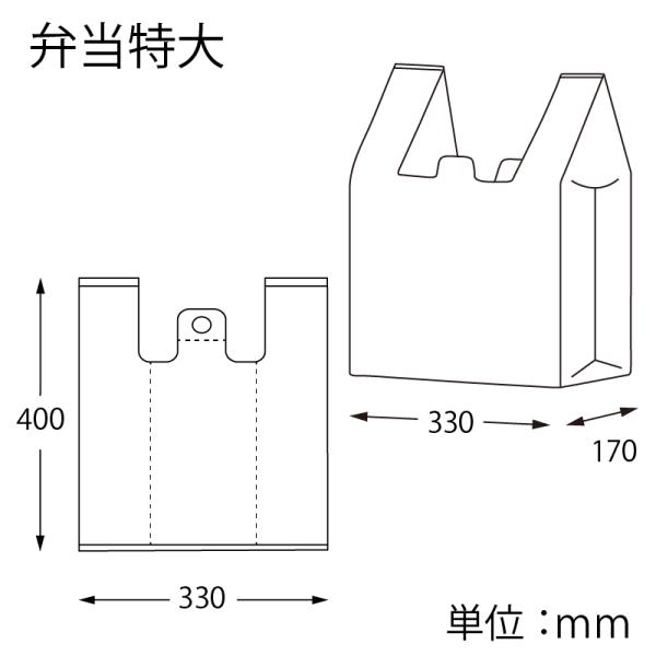 〇大盛のお弁当用くらいの特大サイズで、マチが広くお弁当を傾けずに入れやすい業務用レジ袋です。