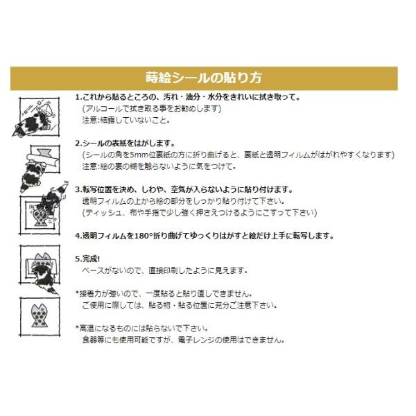 蒔絵調の「立体盛り上がりシール」で大変豪華です。接着力が強いので、一度貼ると貼り直しできません。