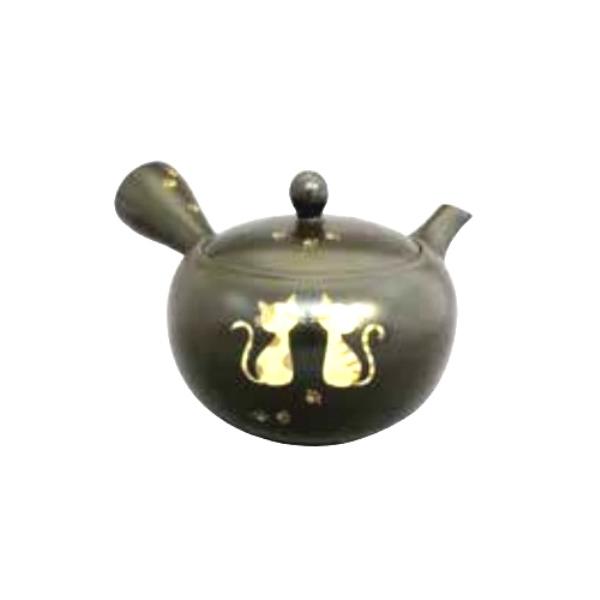 常滑焼 おーばる急須 晶窯 トラネコ座り 黒 約400ml
