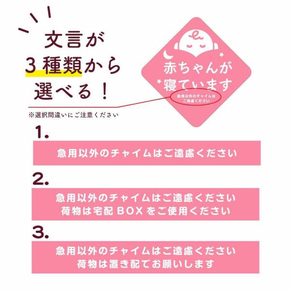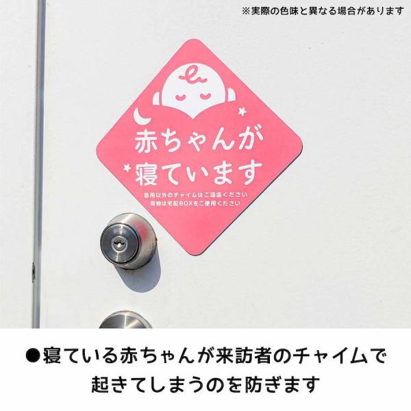 インターホンの近くや玄関扉に貼って、寝ている赤ちゃんが来訪者のチャイムで起きてしまうのを防ぎます。